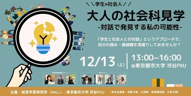 ================================== \\学生×社会人// 大人の社会科見学 ~対話で発見する私の可能性~ 12月13日(土)13:00-16:00 @東京都市大学… 続きを読む »【開催告知】\\学生×社会人// 大人の社会科見学 ~対話で発見する私の可能性~